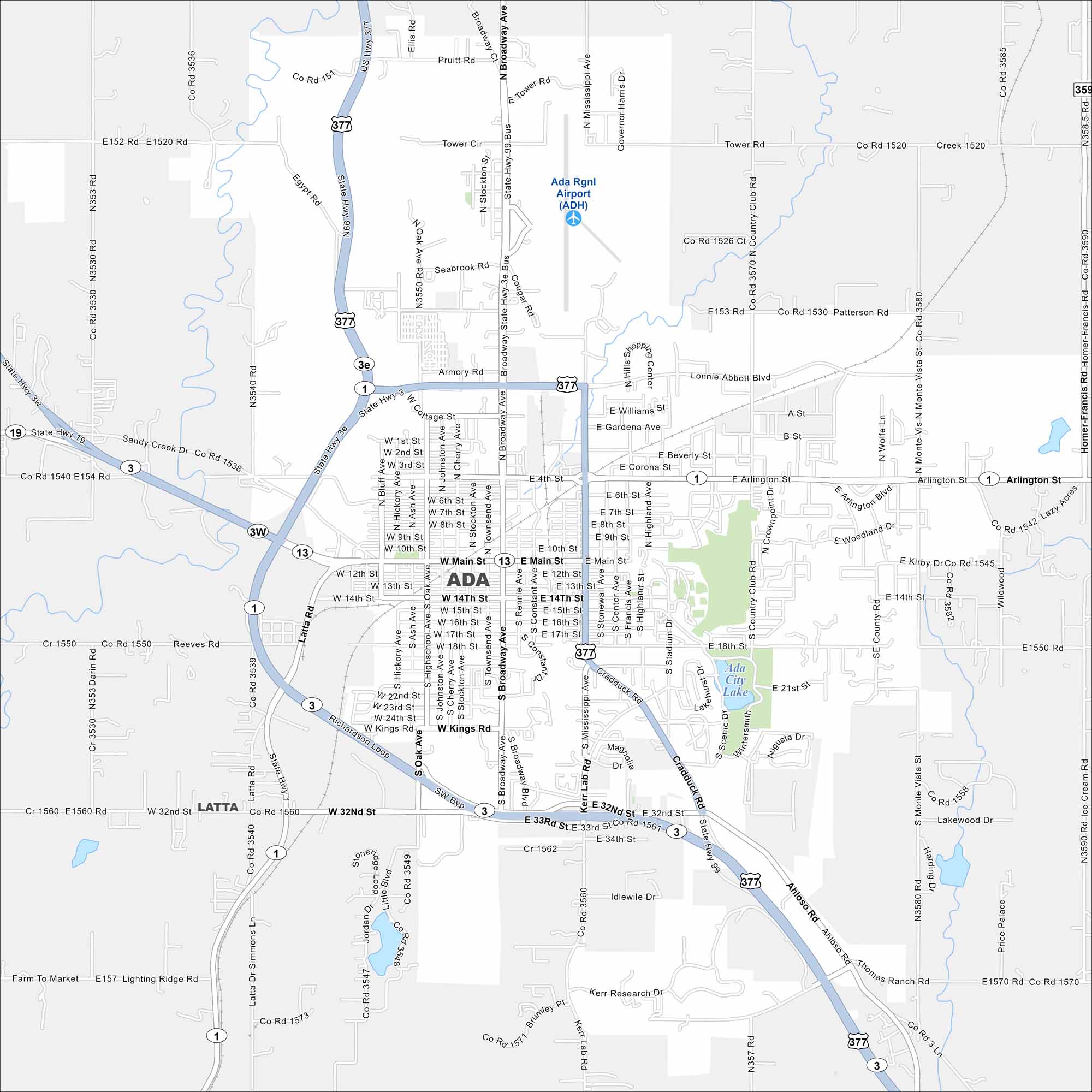 Map of Ada, Oklahoma