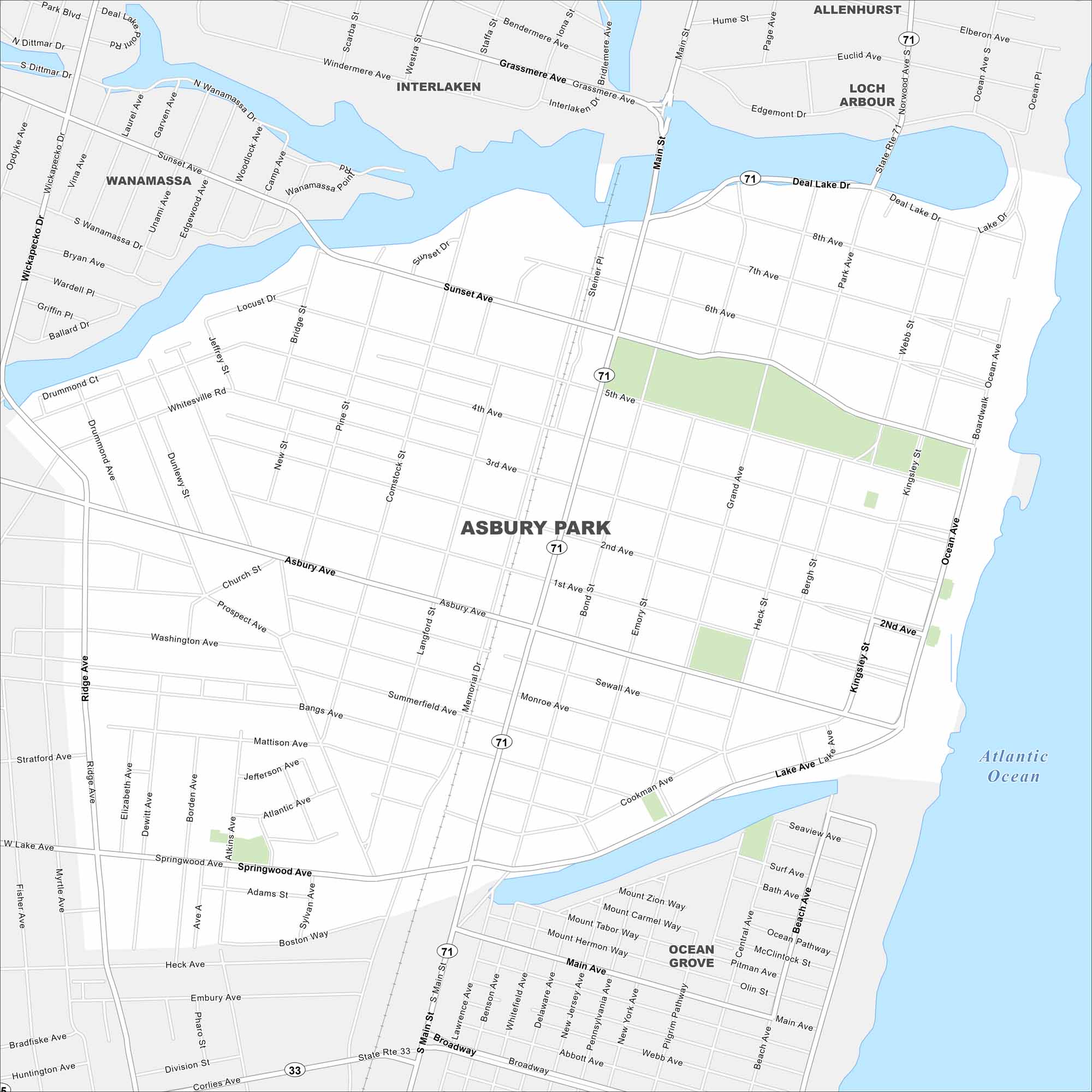Map of Asbury Park, New Jersey