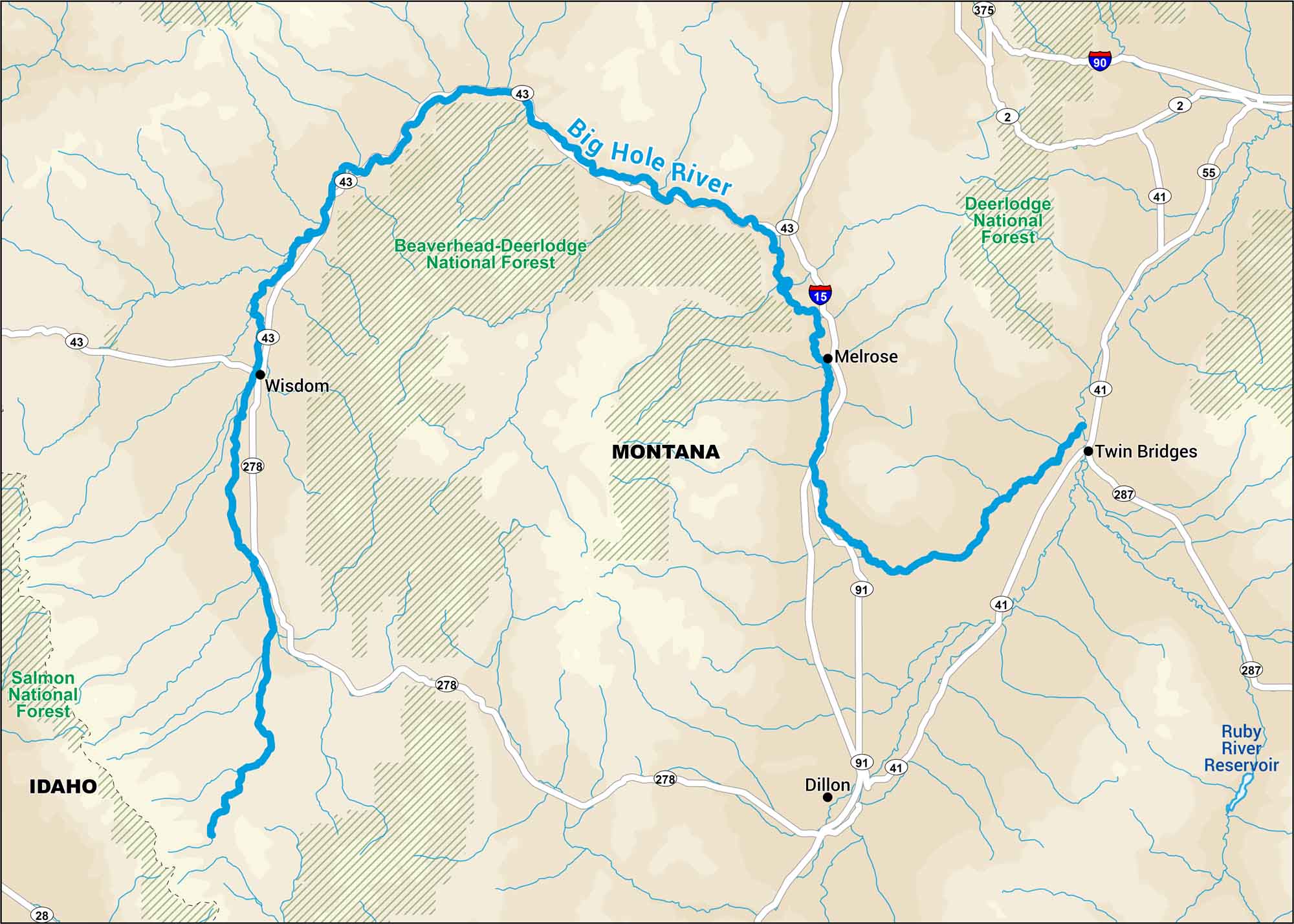Montana’s Big Hole has broad valleys, wide water, open sky. It’s located near Beaverhead-Deerlodge National Forest, perfect to set up a campsite.