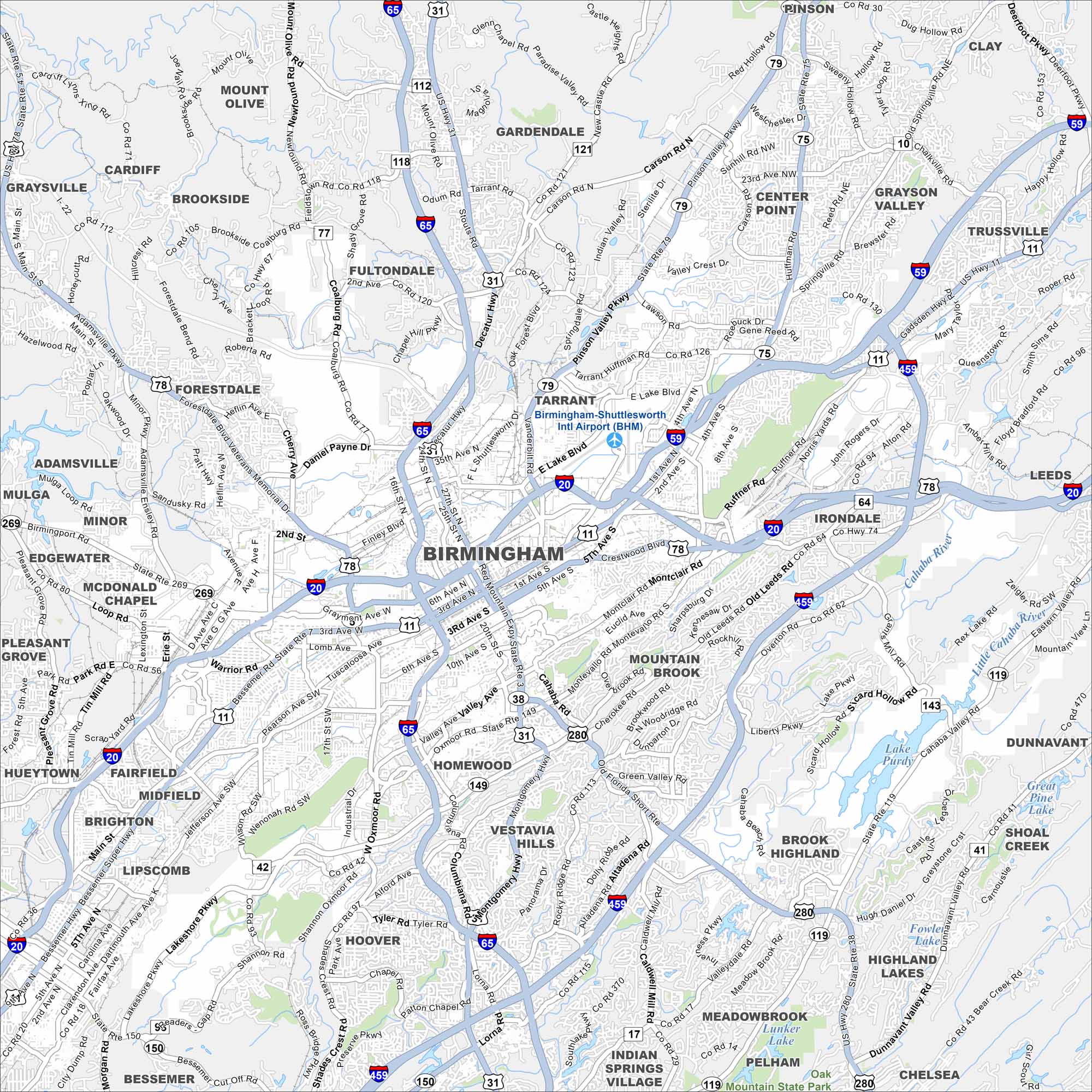 Our map of Birmingham shows you around its downtown core and historic districts. Birmingham is in north-central Alabama and is known as the “Magic City”.