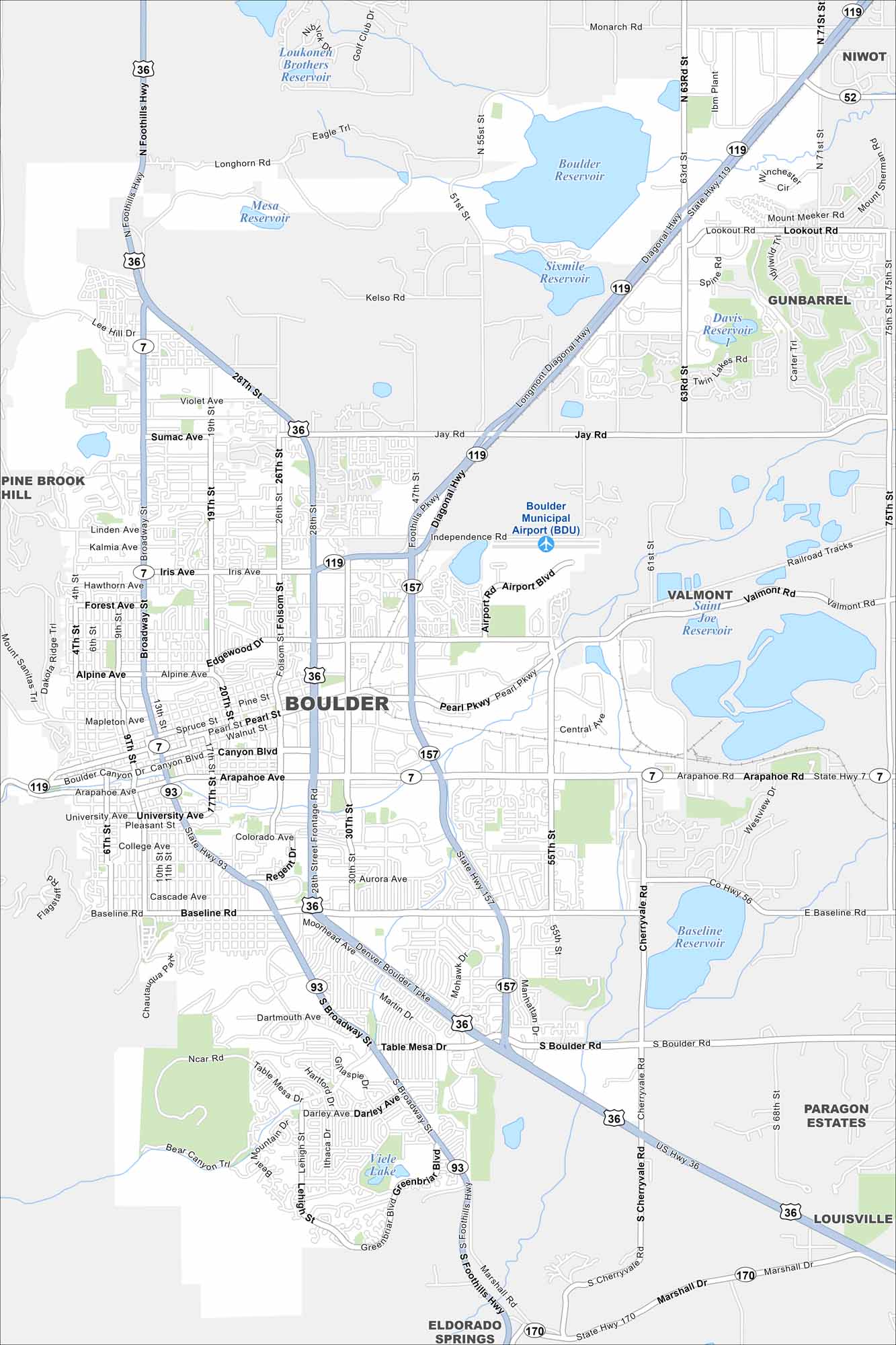 Boulder sits at the foot of the Rocky Mountains. Our map shows open space, trails, and streets. It’s known for outdoor living and a strong university presence.