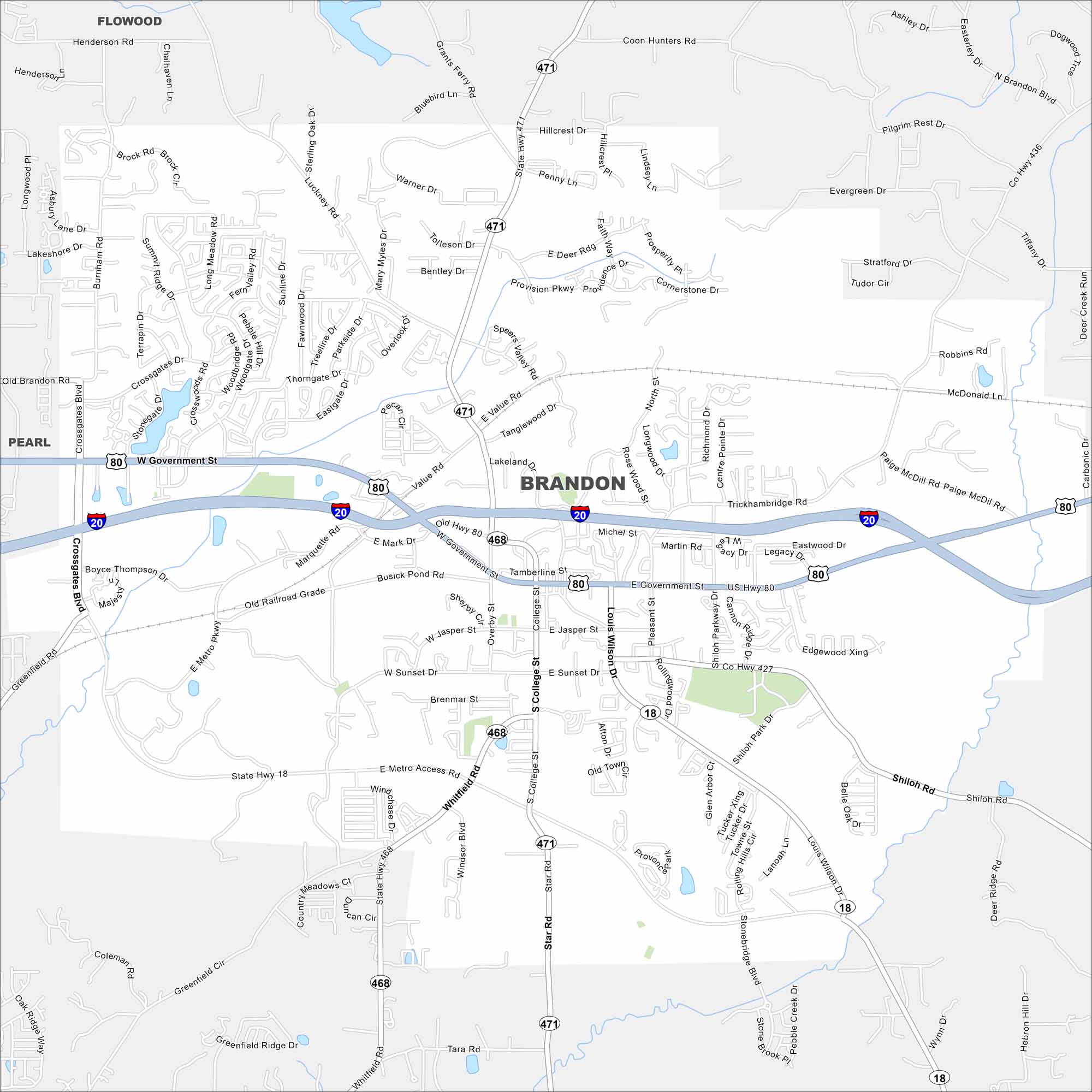 Brandon is east of Jackson with a small-town feel. Take a look at it on our map with neighborhoods spread among trees and lakes. It’s grown tremendously because of its location near the capital.