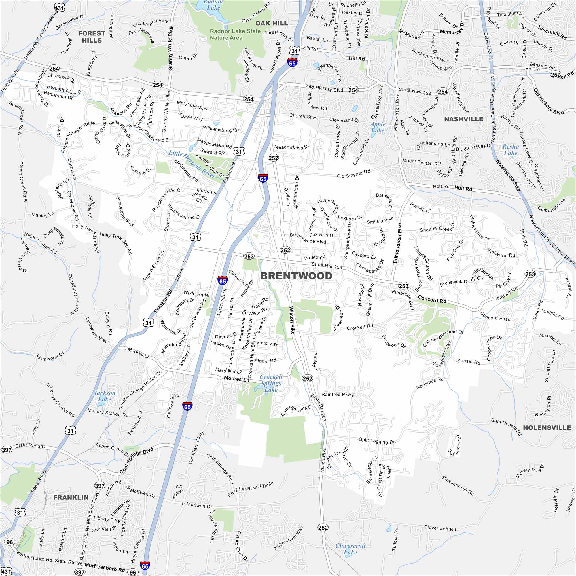 Explore Brentwood with our map. It’s known for large homes and green spaces. The city is close to Nashville but holds its own calm character.