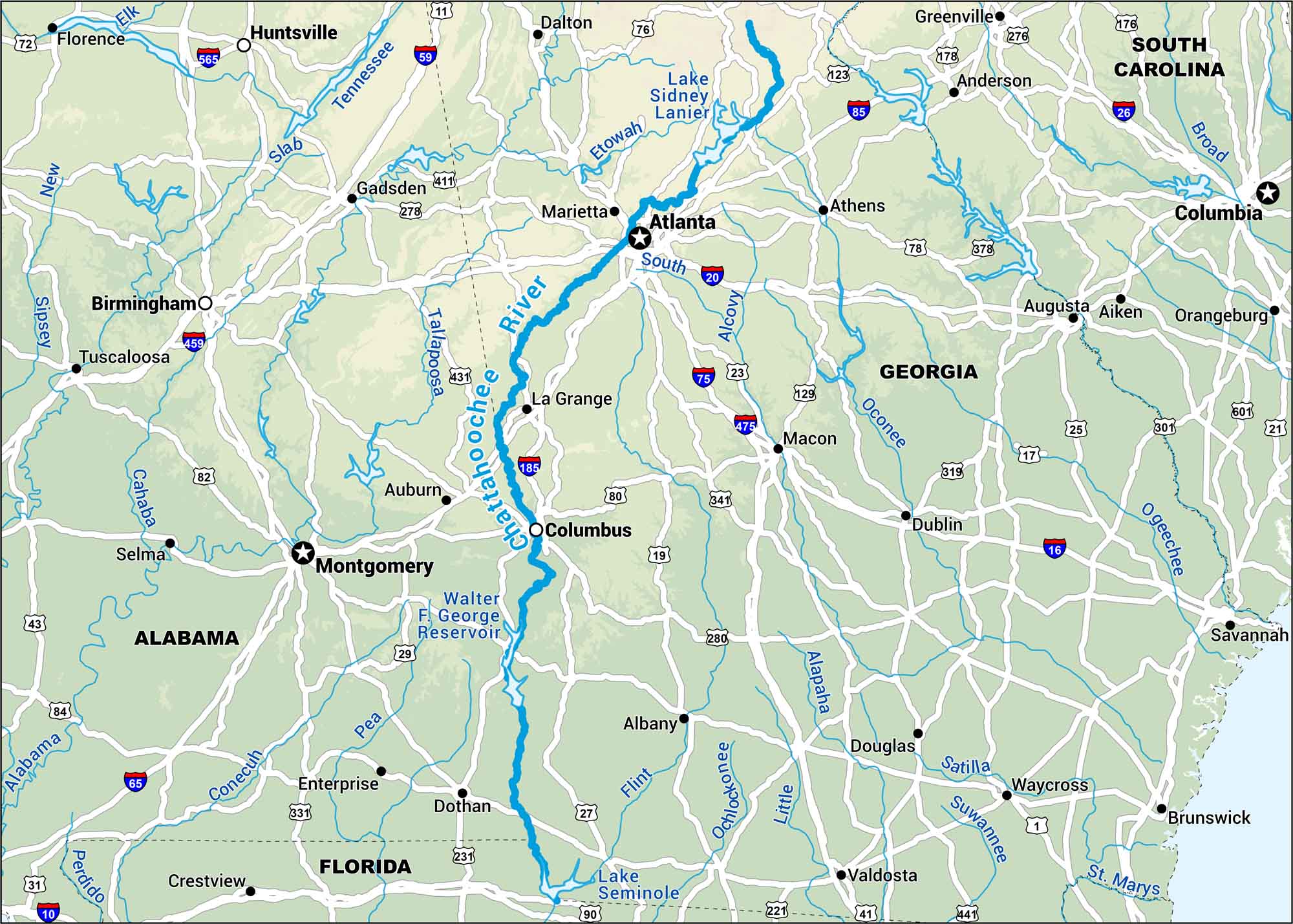 From the Blue Ridge down through Atlanta, the Chattahoochee winds through it all. The map lays down the ground rules of the Chattahoochee River. Half wild, half urban. But all southern.