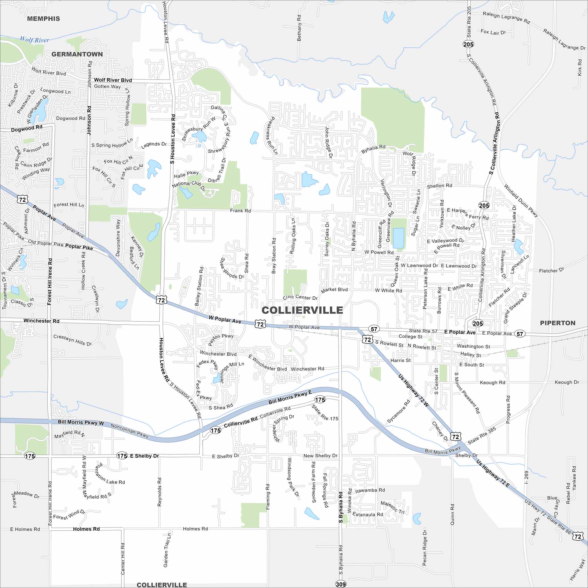 Map of Collierville, Tennessee