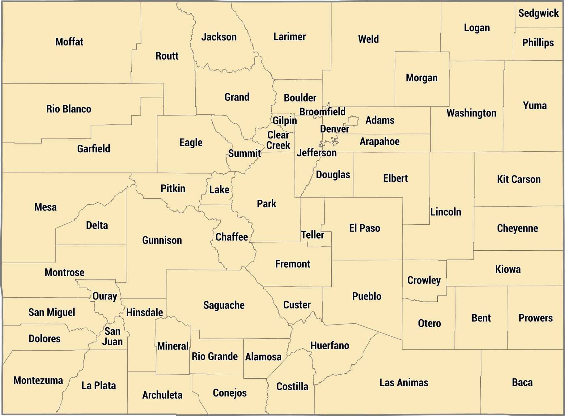 The Rockies split Colorado’s 64 counties right down the middle. Eastern counties are flat prairie, western counties are all mountains and ski towns. Denver sits right where the plains meet the foothills.