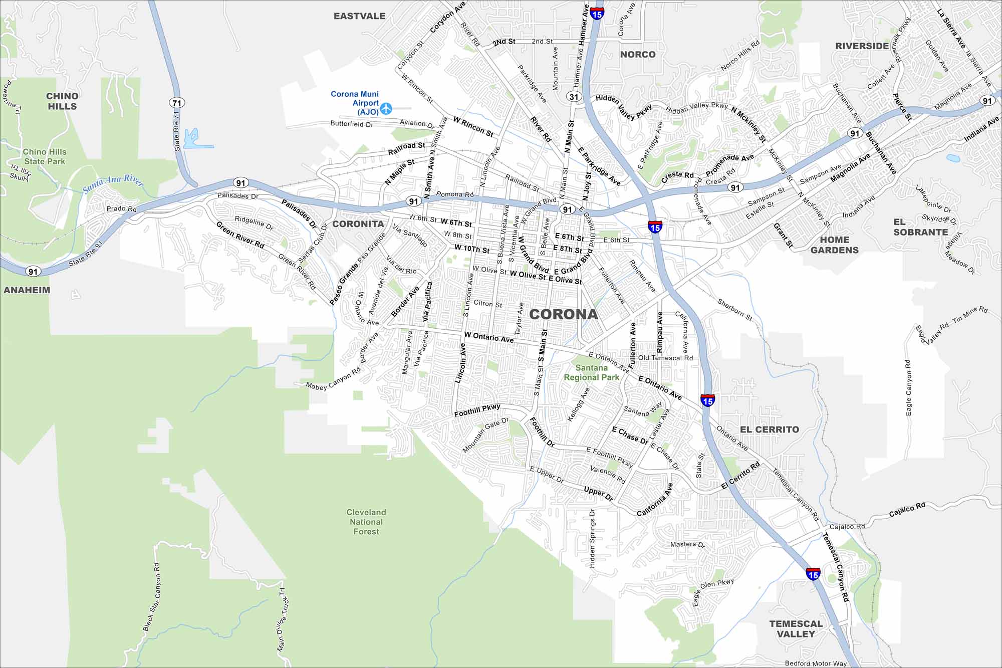 • Road Map of Corona, California