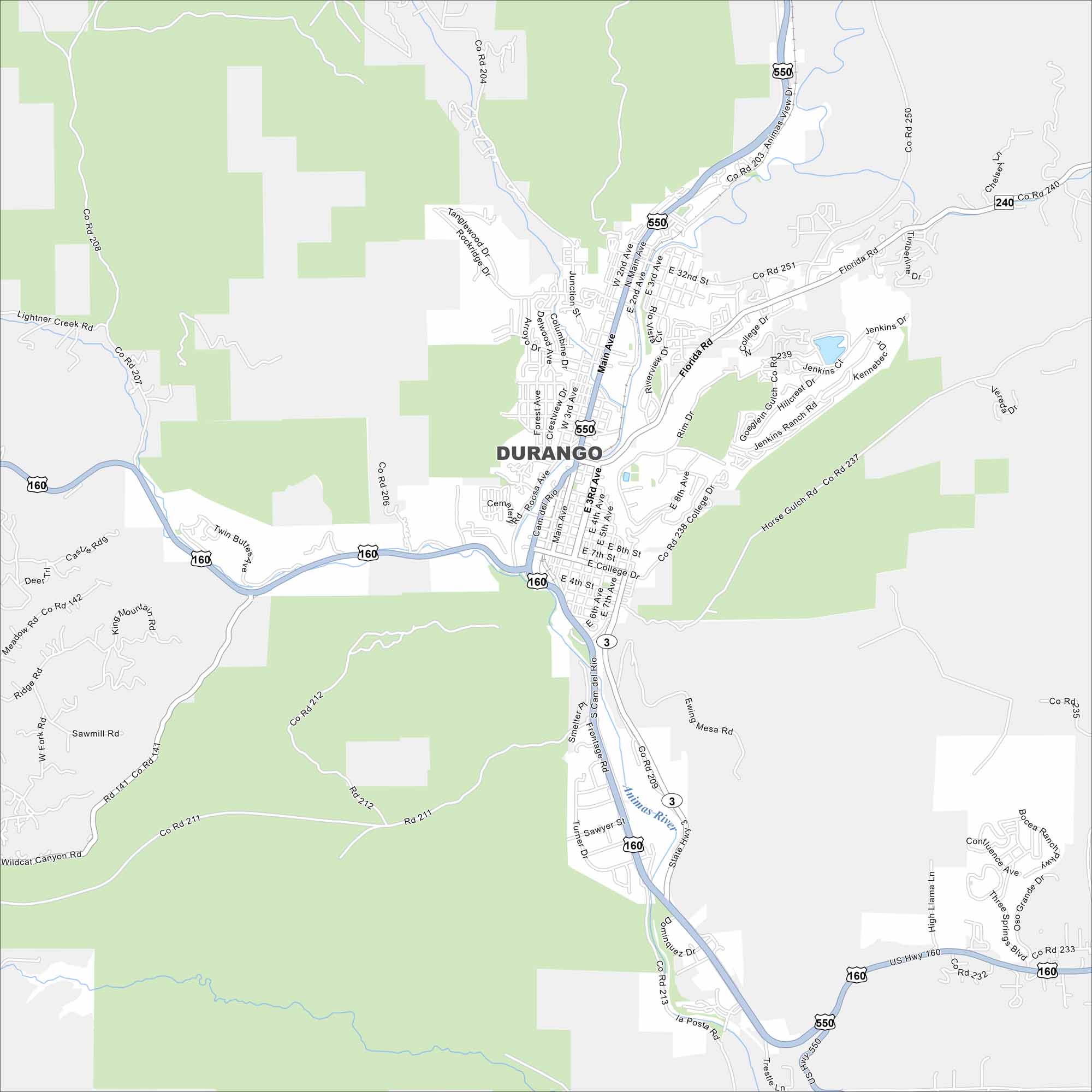 • Road Map of Durango, Colorado