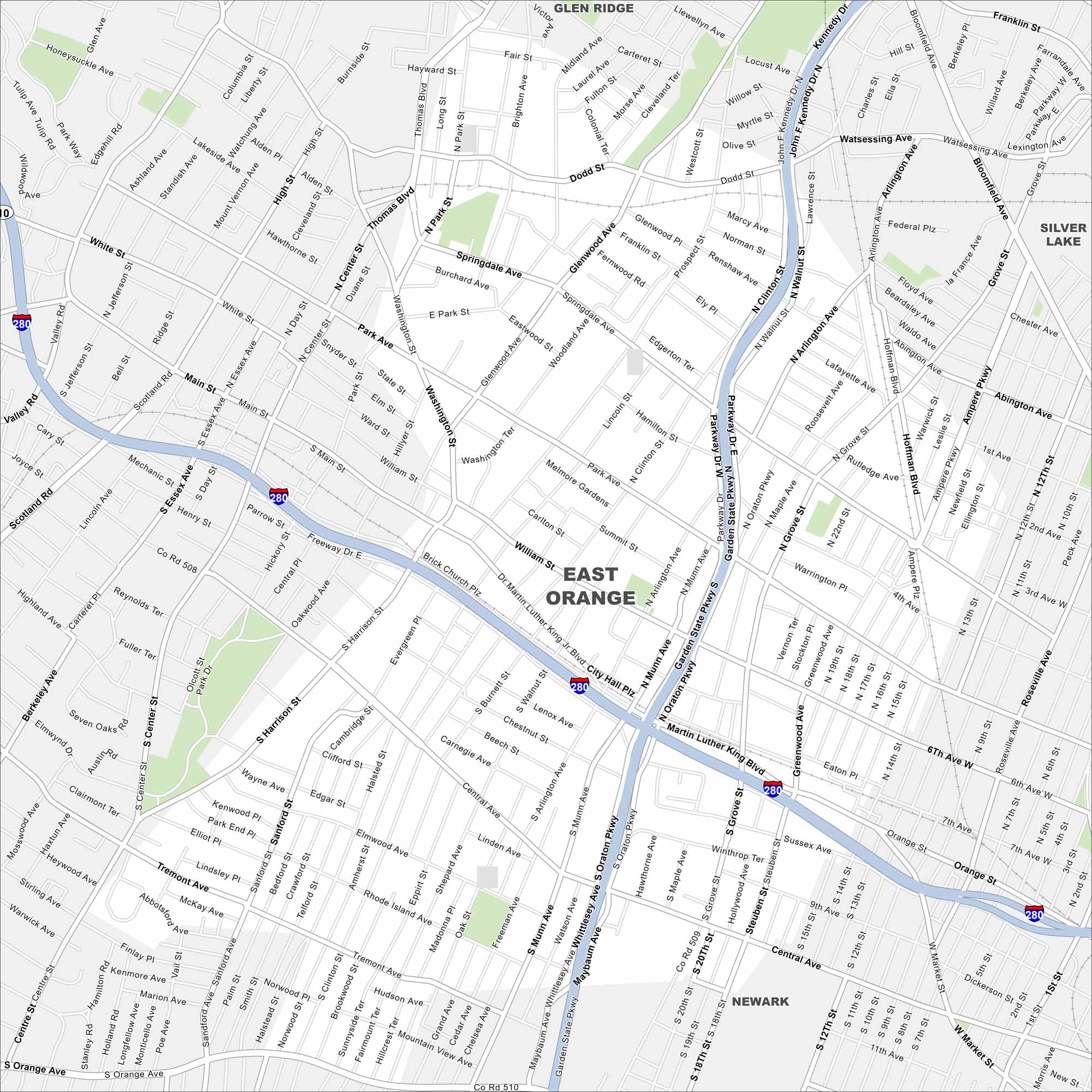 Explore East Orange in northern New Jersey, just west of Newark. The grid of streets links quickly into the Garden State Parkway. Its location makes it a hub between Newark and New York City.