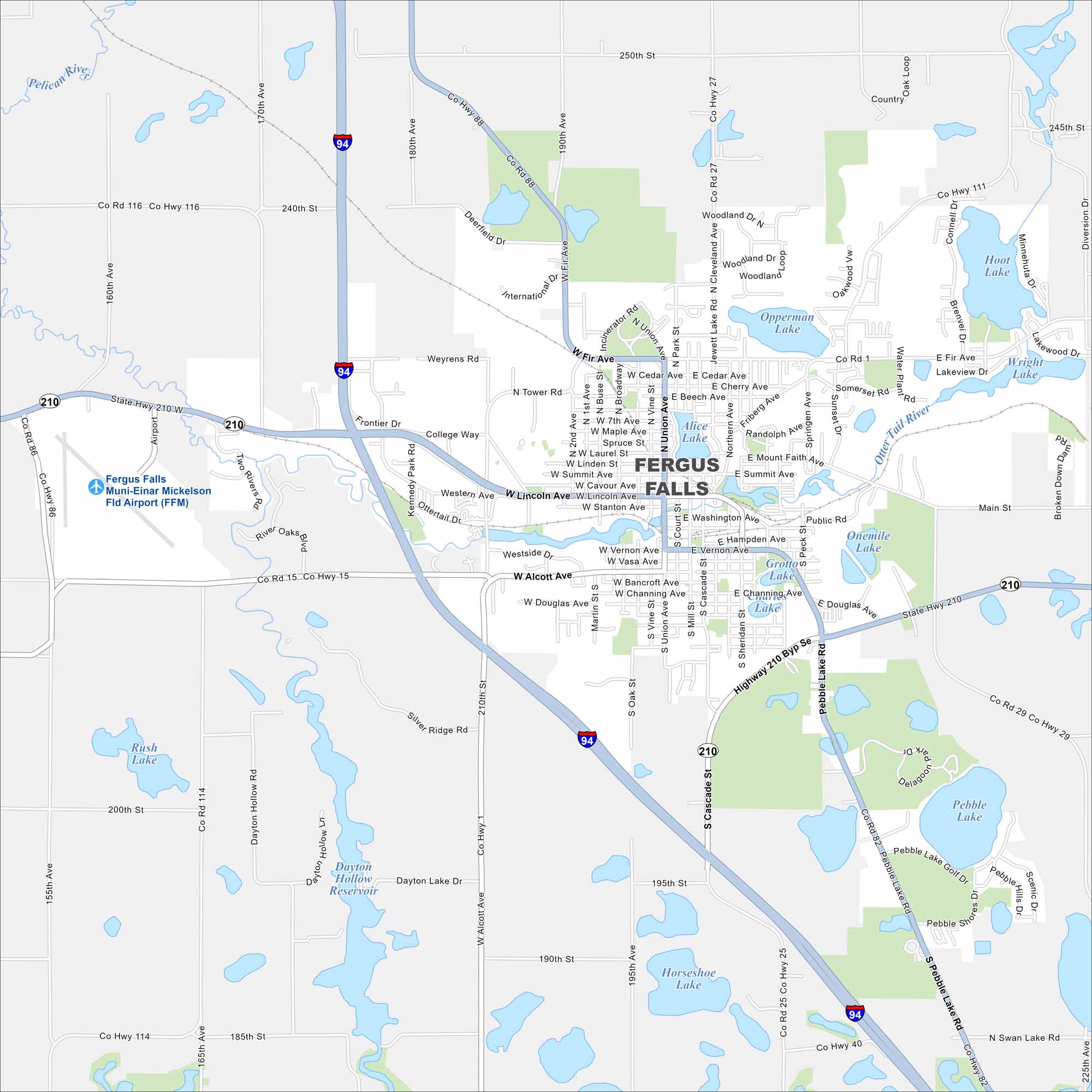 Fergus Falls sits in the heart of Minnesota lake country. The Otter Tail River cuts through town, connecting several small lakes.