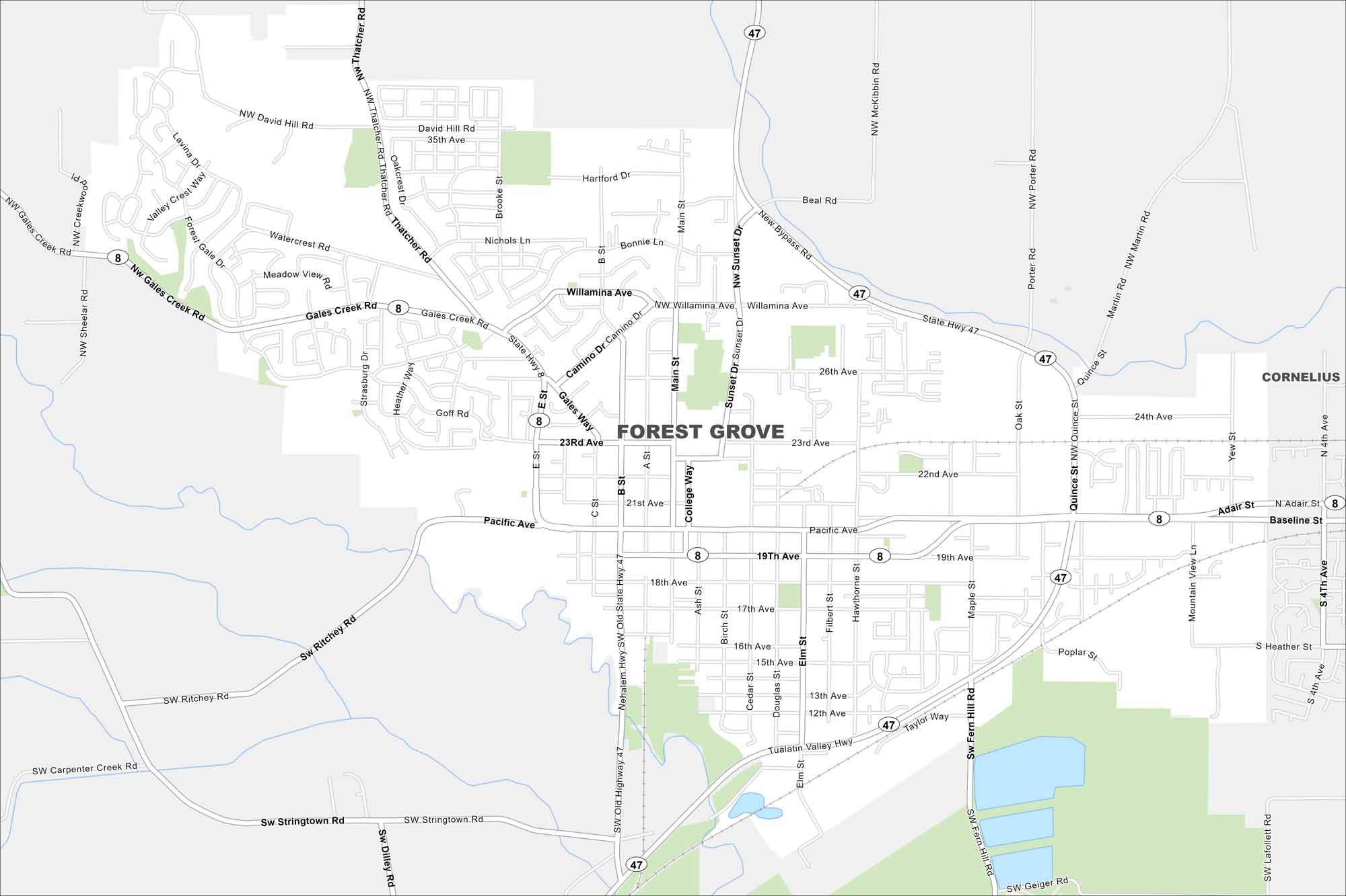 • Road Map of Forest Grove, Oregon