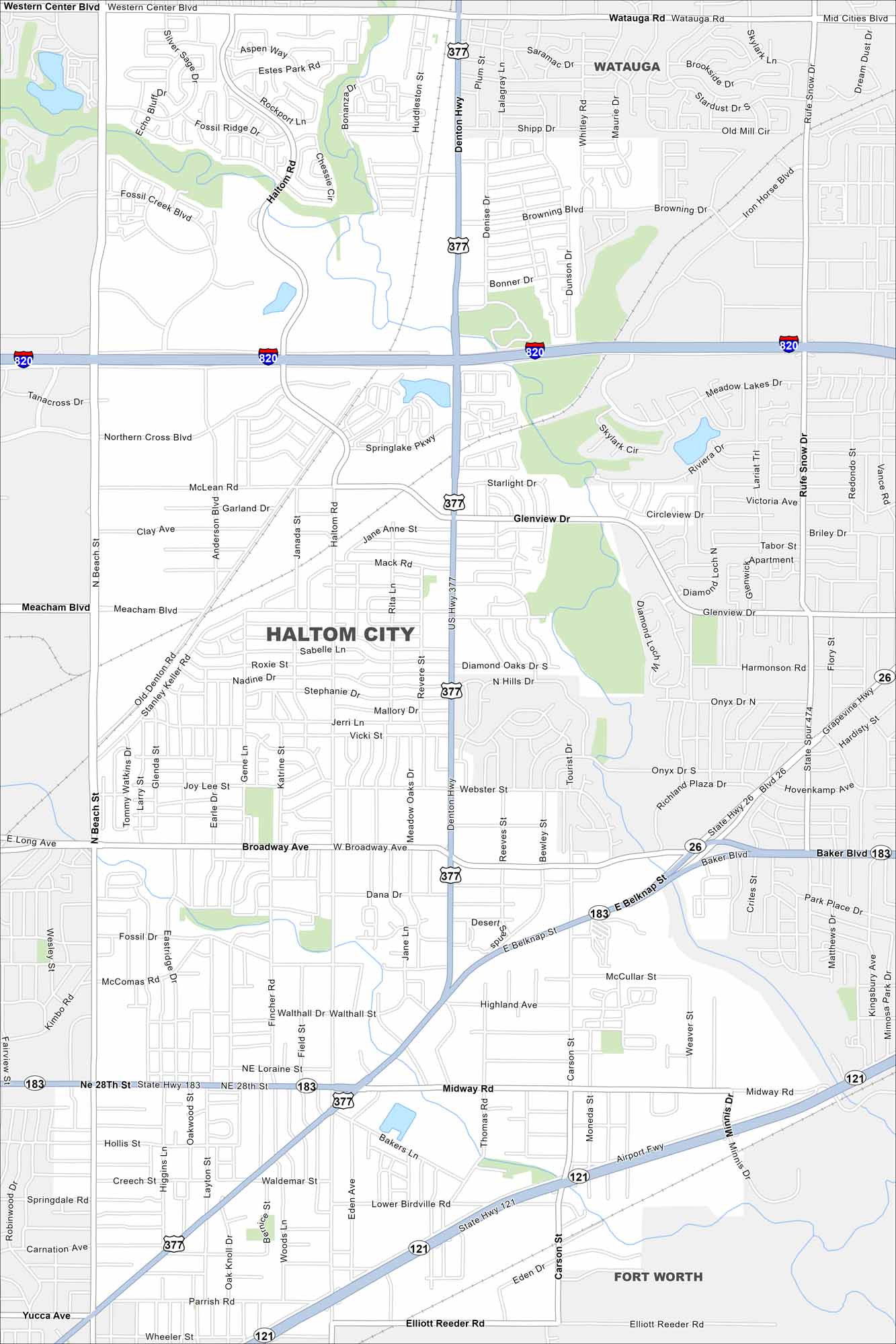 Haltom City is part of the Fort Worth area in north Texas. This map shows dense neighborhoods tied together by major roads. Its location places it right in the heart of the metroplex.