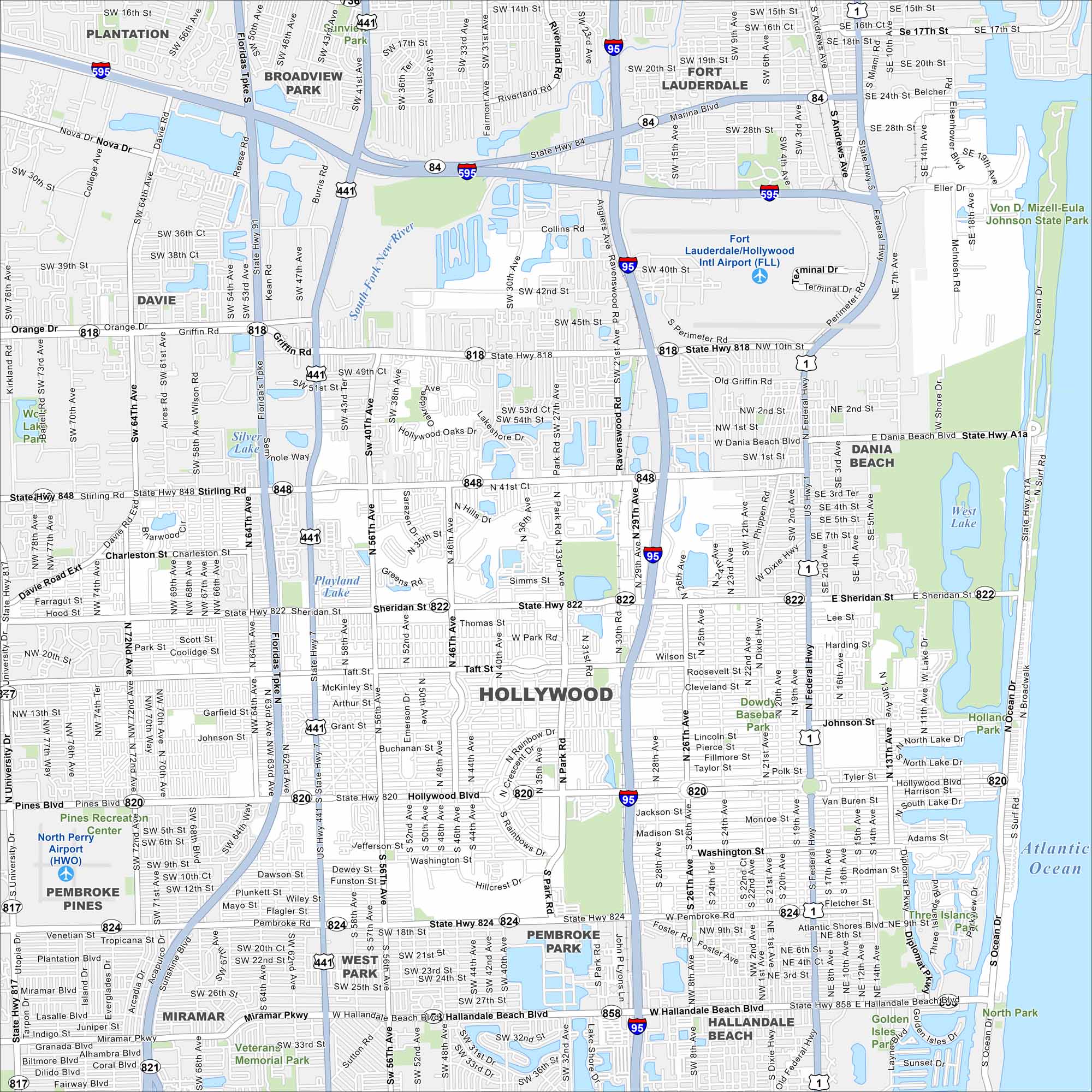 Map of Hollywood, Florida