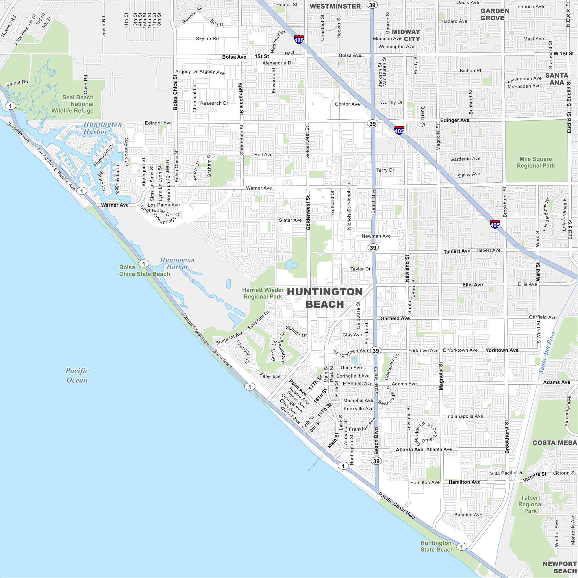 Map of Huntington Beach, California