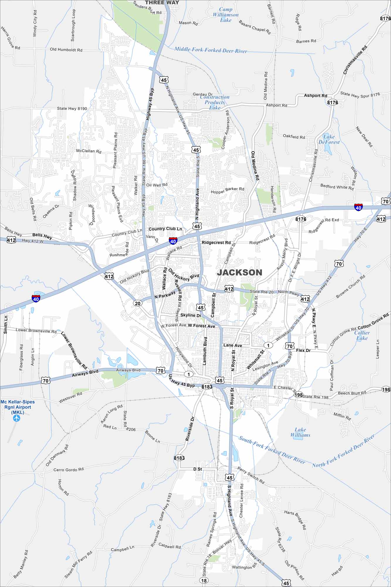 Map of Jackson, Tennessee