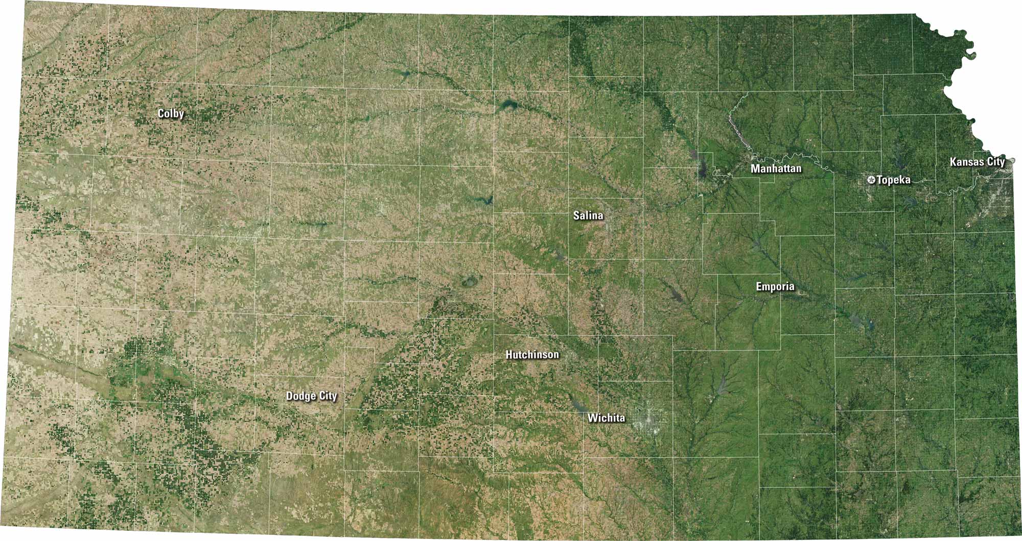 Satellite Map of Kansas