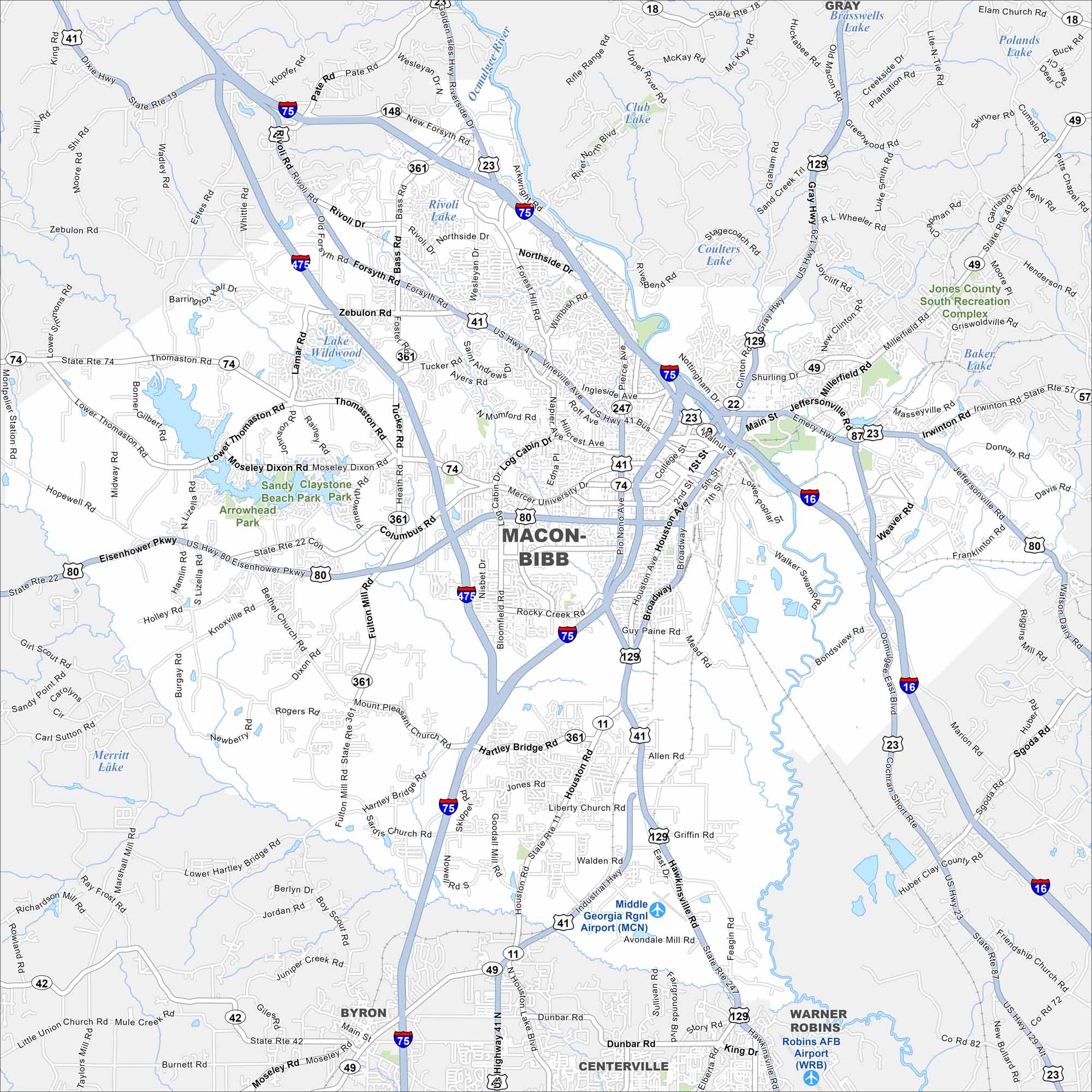 • Road Map of Macon, Georgia