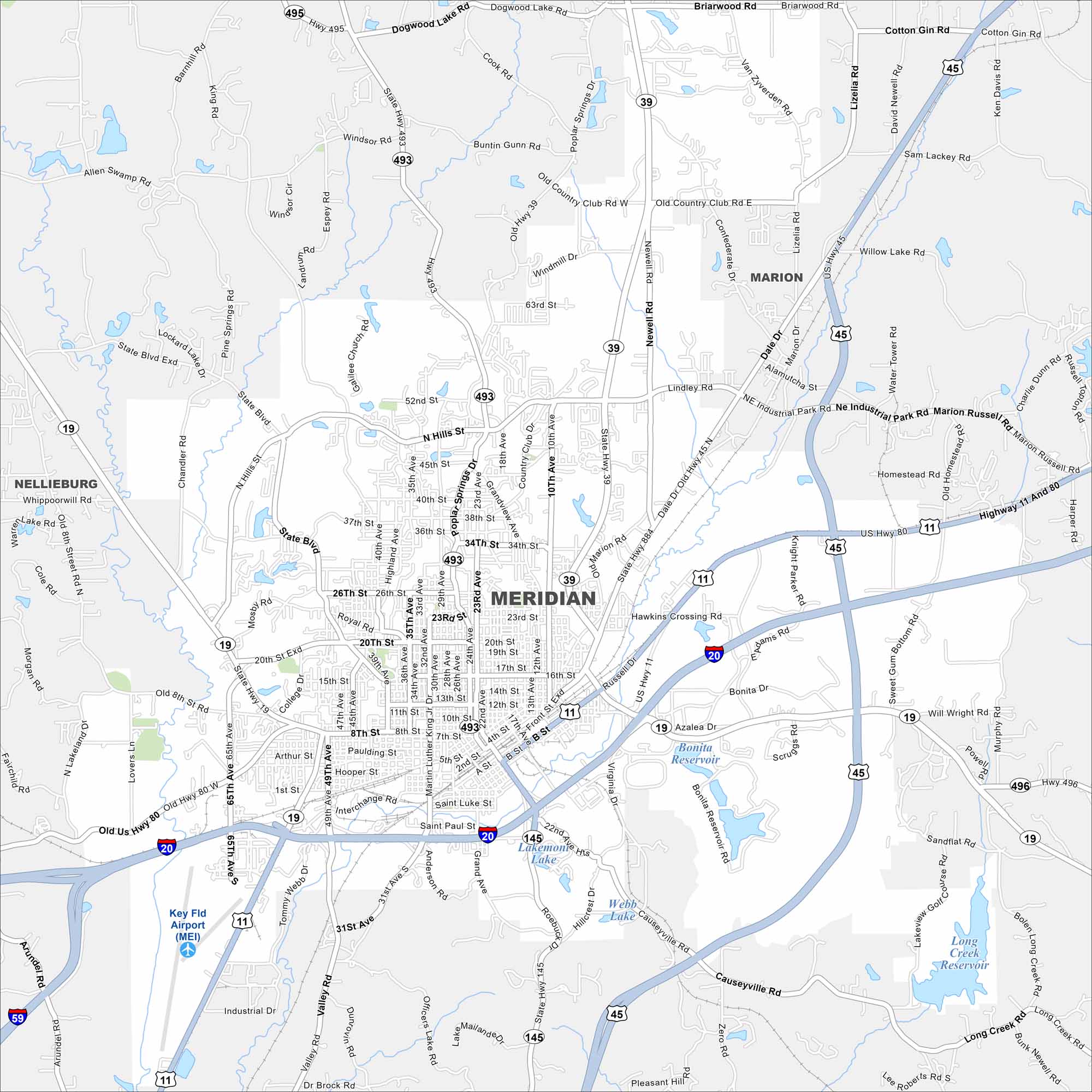 Check out Meridian with our road map. Railroads and highways converge here, shaping its layout. The city has long been a transportation hub with its eastern Mississippi location.
