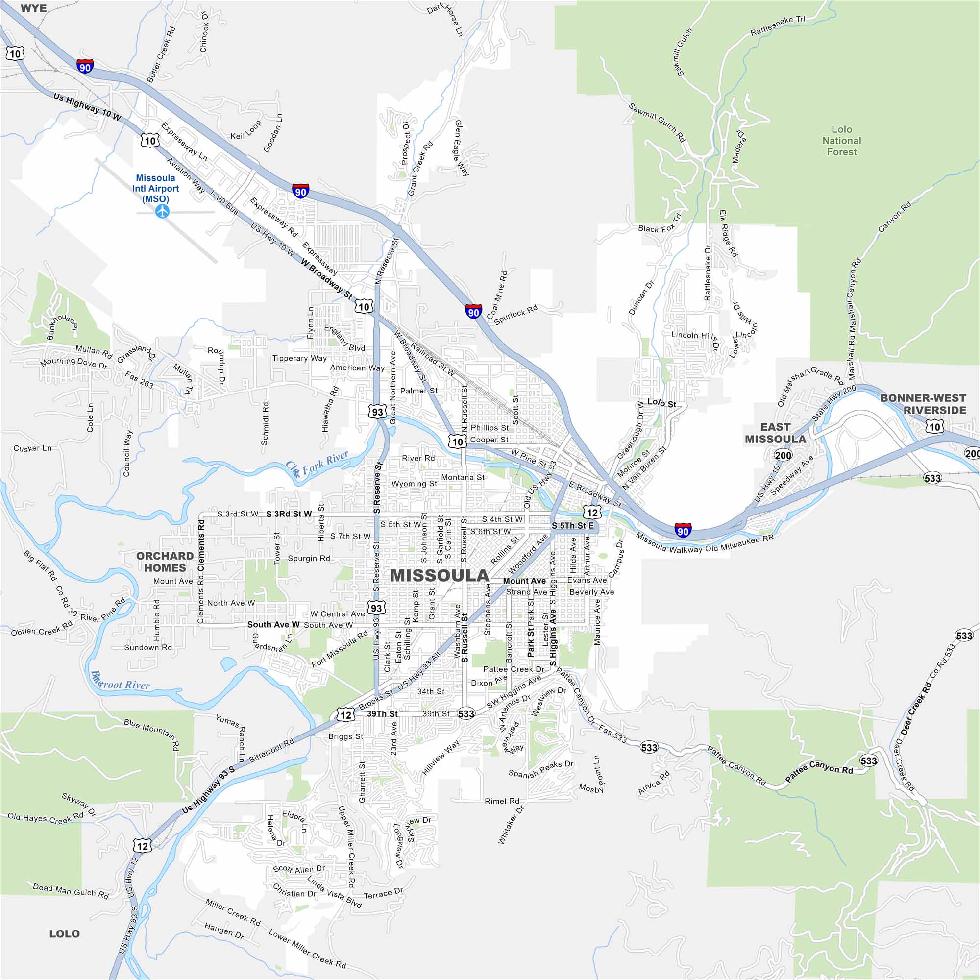 Map of Missoula, Montana