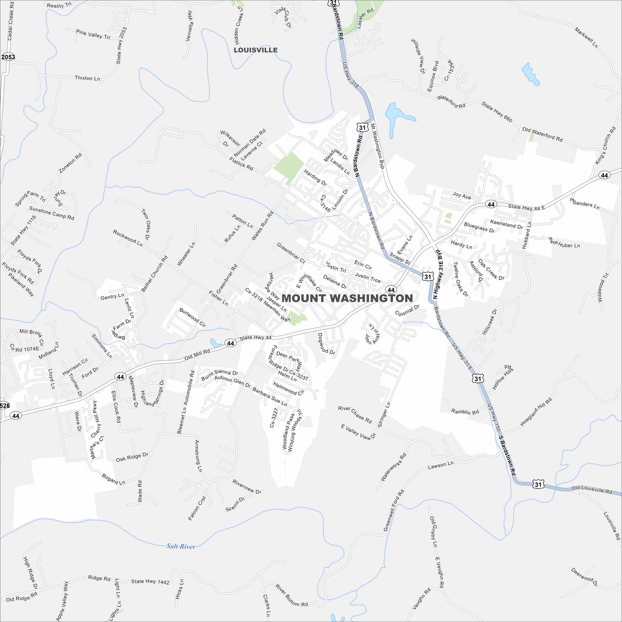 • Road Map of Mount Washington, Kentucky