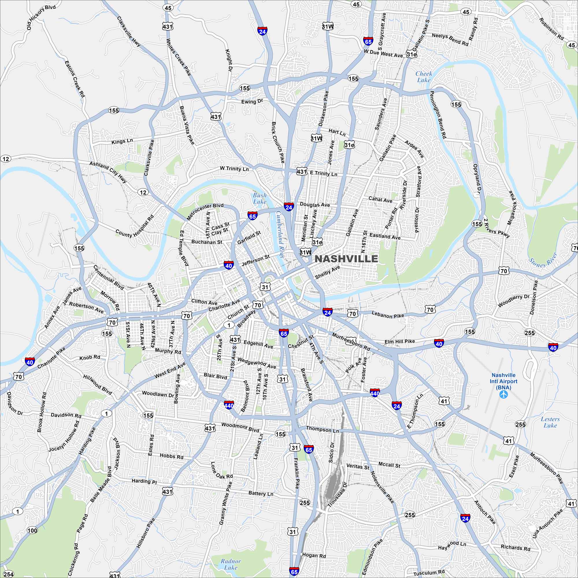 Discover Nashville with our map of Tennessee’s capital. The downtown core sits along the Cumberland River, with neighborhoods spreading into rolling hills. Music Row and the state capitol anchor its identity.