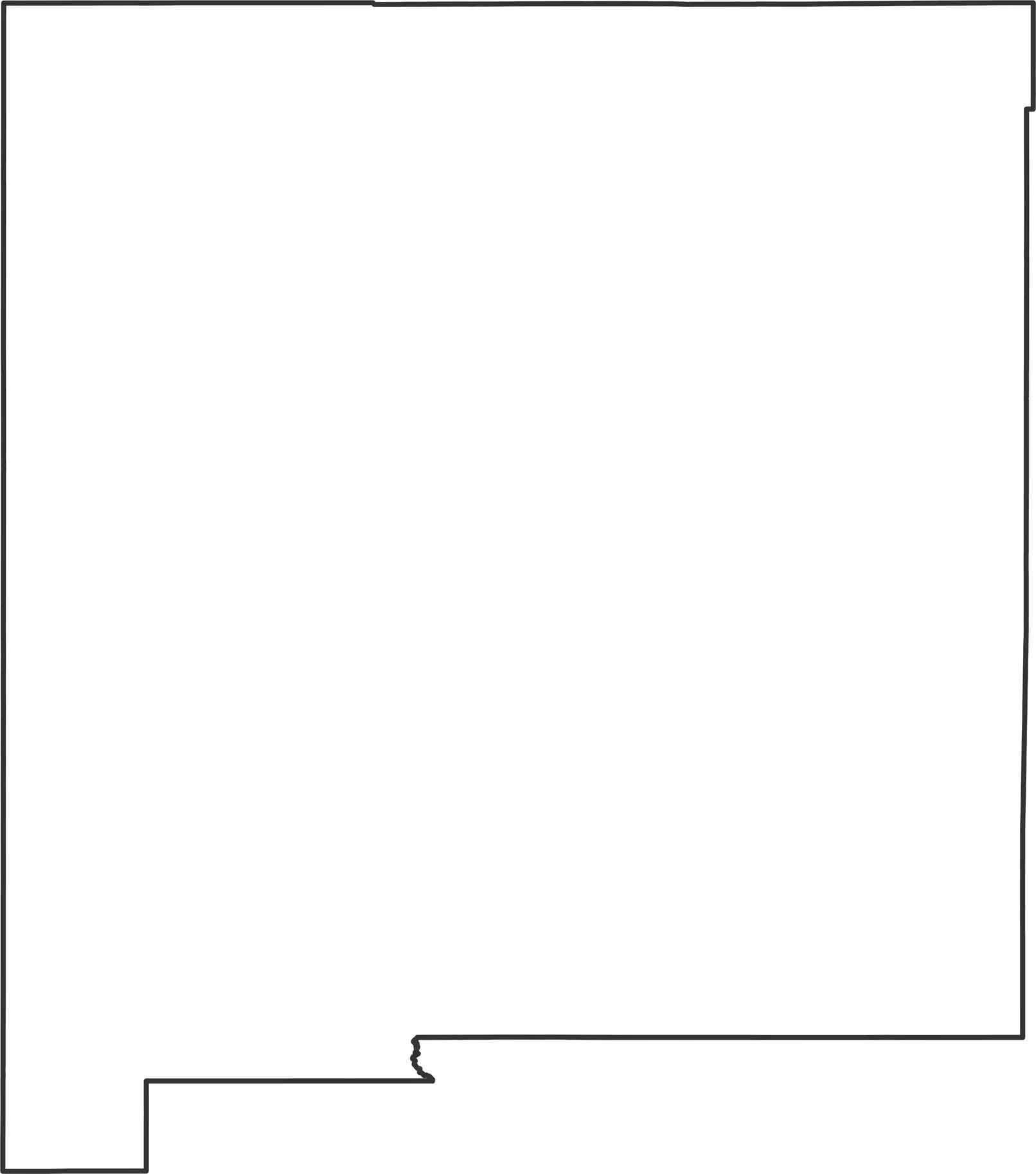 New Mexico forms a mostly rectangular shape with only slight border shifts. Our outline map of New Mexico displays this nearly perfect rectangle. New Mexico is one of the three states with mostly straight-line borders.