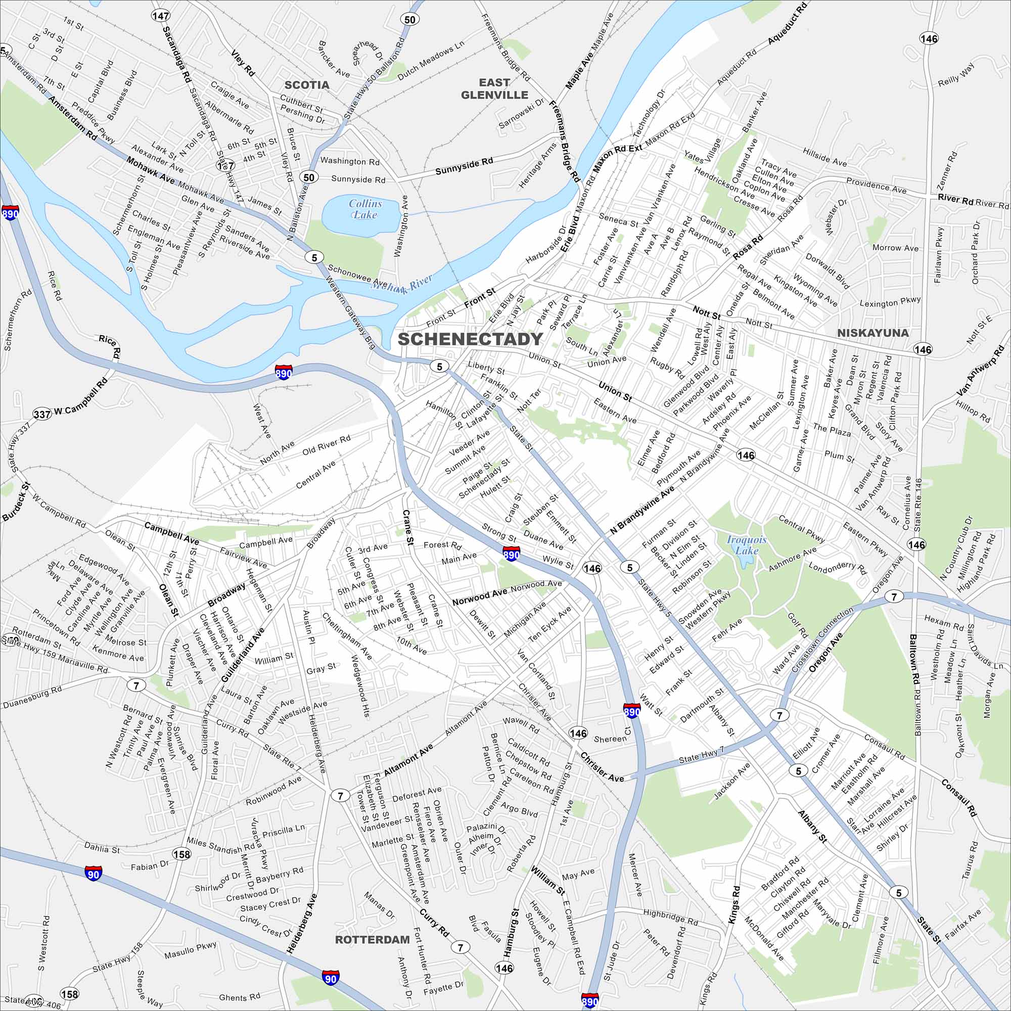 Our map of Schenectady highlights its historic Stockade District, General Electric roots, and ties to the Mohawk River. It’s a city with deep history and character.