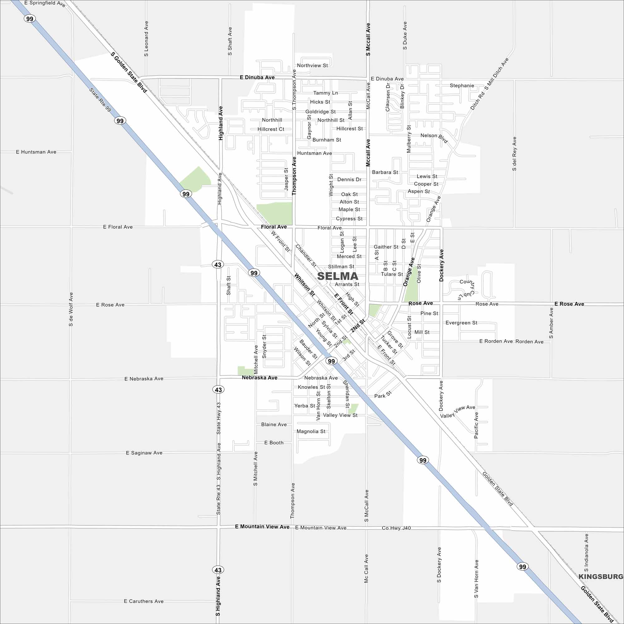 Here’s our map of Selma, right in the heart of the San Joaquin Valley. It’s known as the “Raisin Capital of the World”. Why? Well, 90% of raisins in America are produced within eight miles.