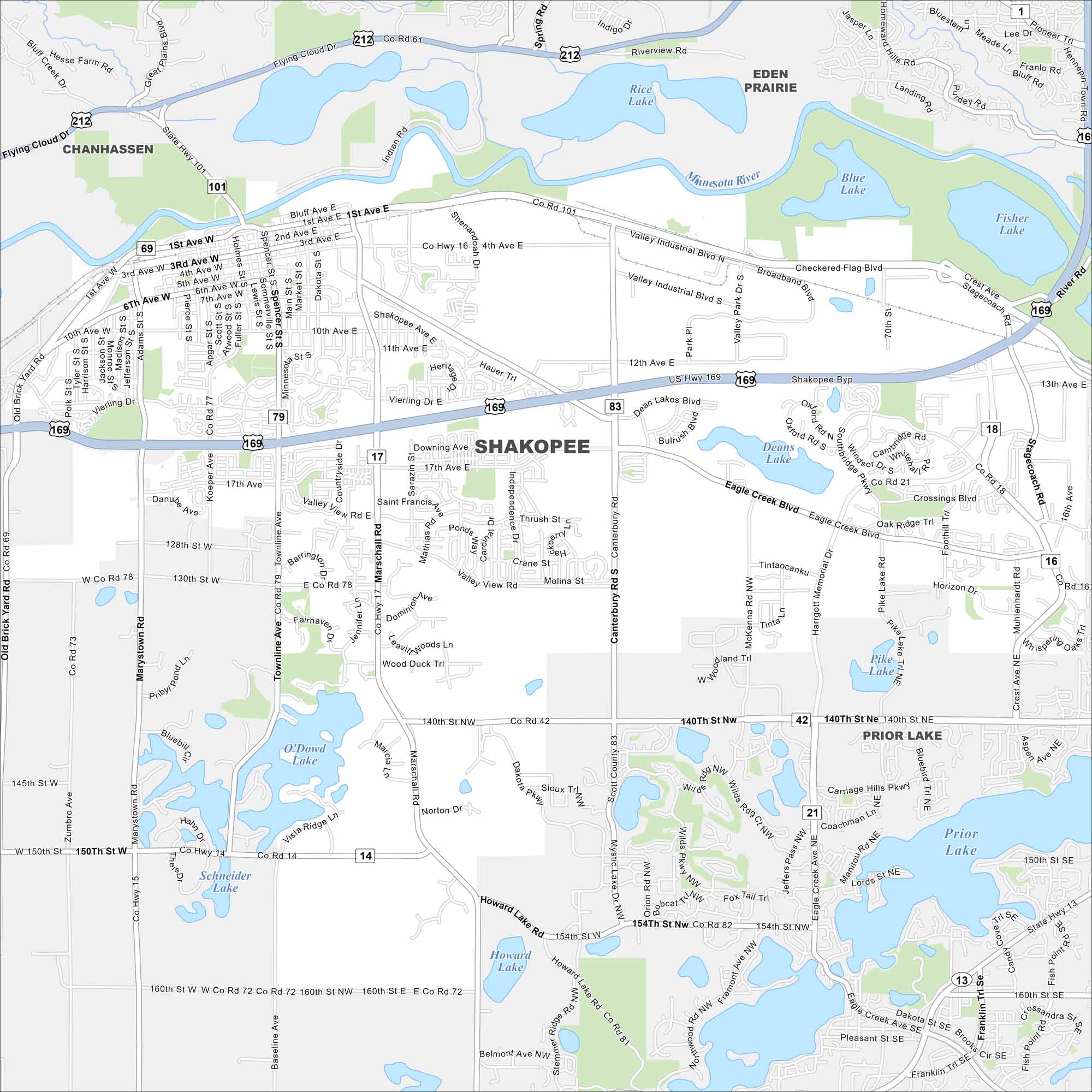 Our map of Shakopee helps you find your way. It’s home to Valleyfair amusement park, Canterbury Park racetrack, and a growing mix of neighborhoods.