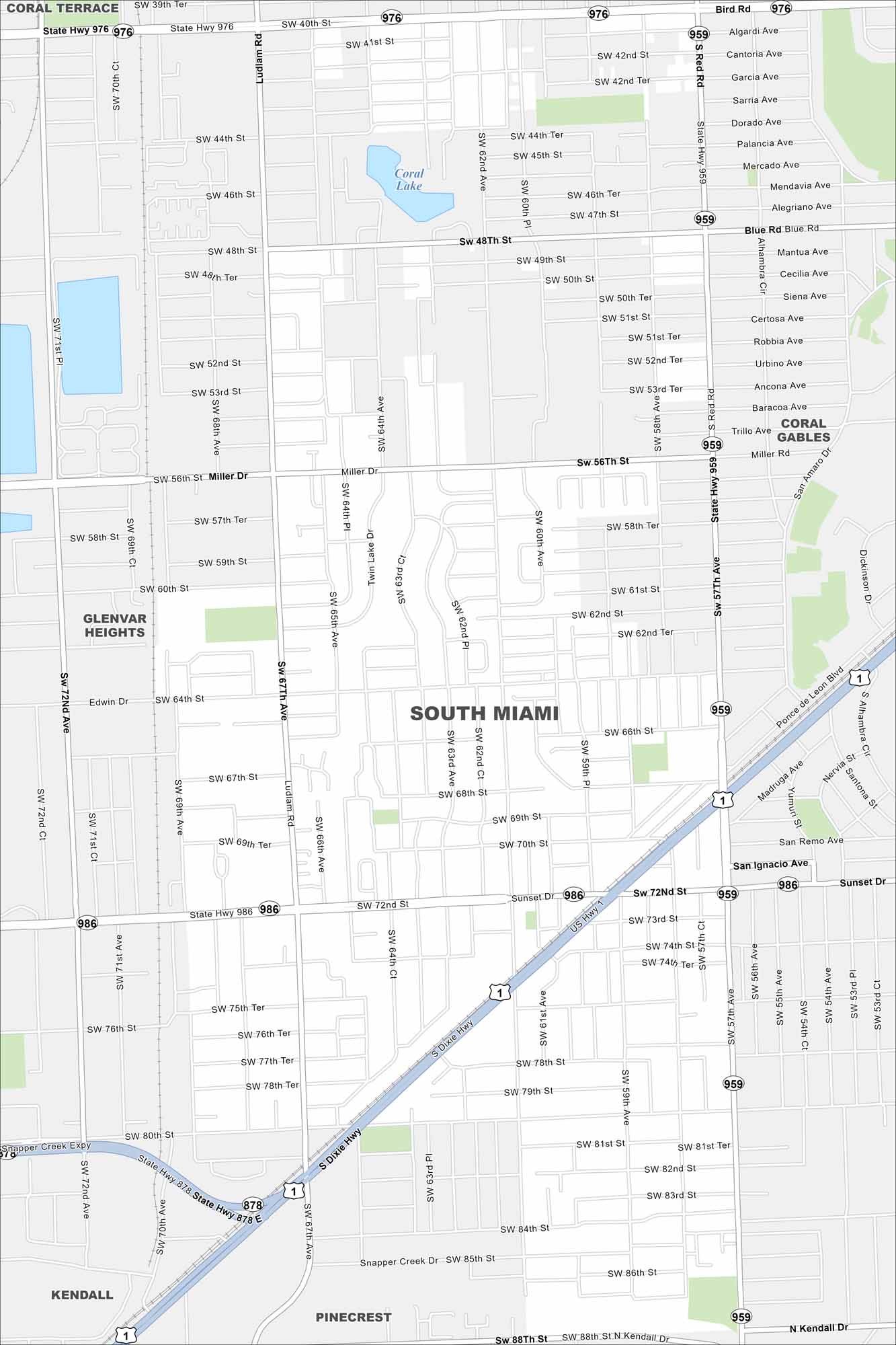Get to know South Miami with our road map. The area features major highways/streets, local parks and a mix of neighborhoods. And the best part is you’re such a close distance to Miami.