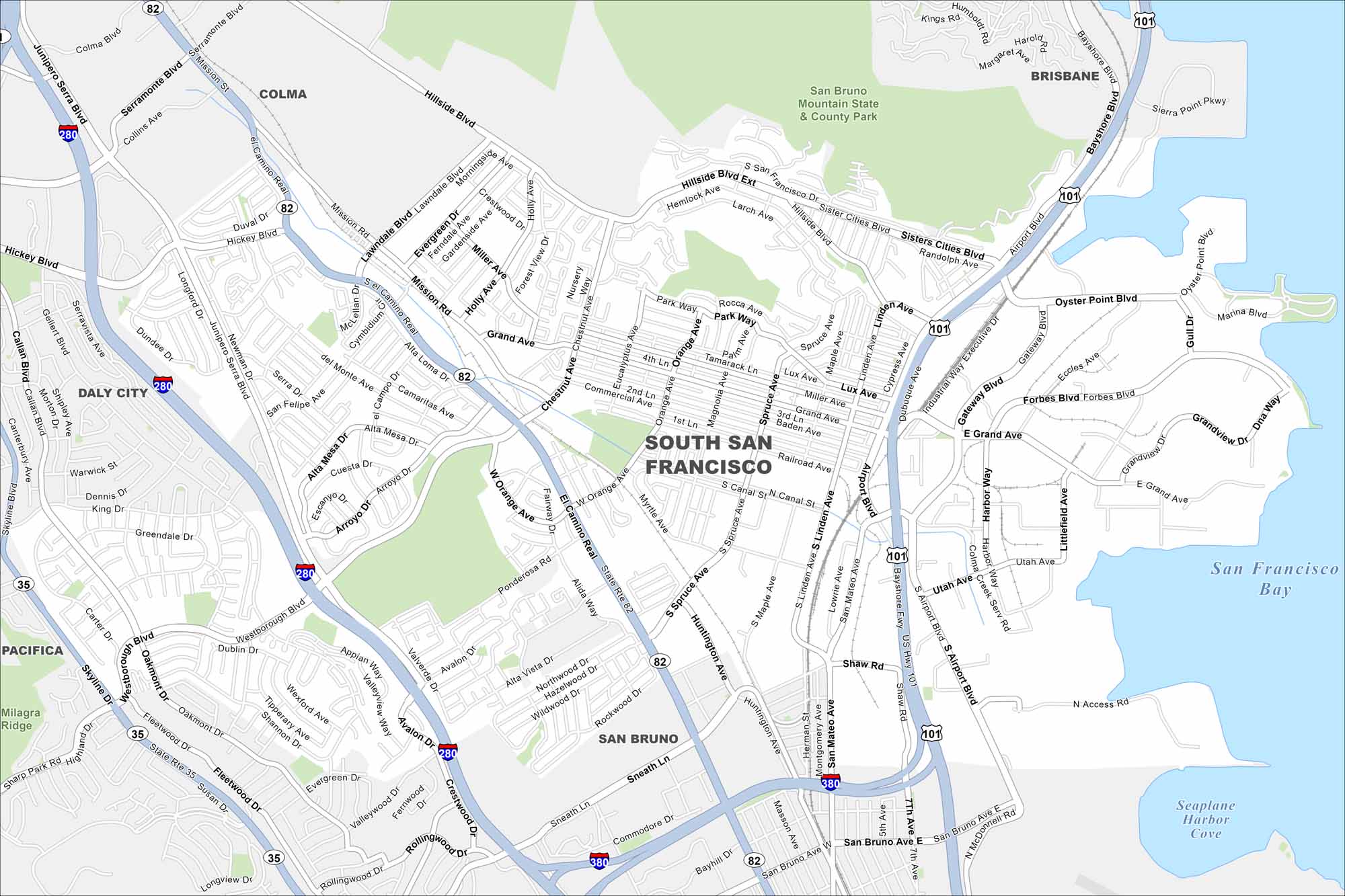 See how South San Francisco is connected to the Bay Area. Our map helps you its hillside neighborhoods and the famous sign on the mountain.