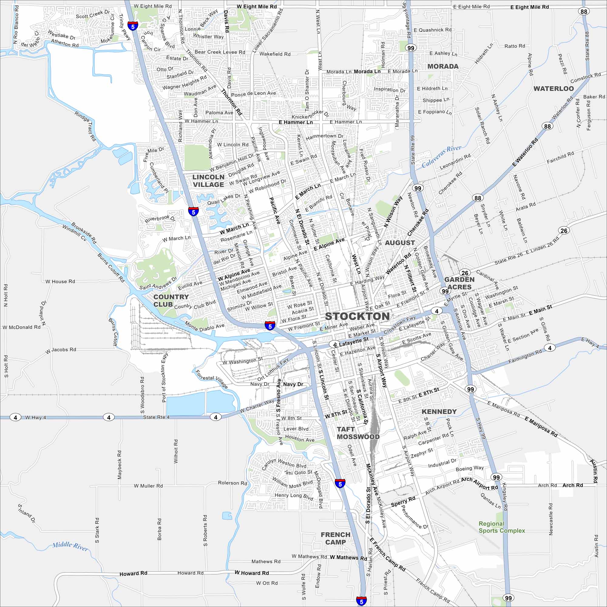 • Road Map of Stockton, California